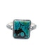 Adj ring with Montezuma Turquoise stone measures 3/4" x 7/8" with old style pawn leaves. Overall size is 1 3/4" x 1 1/2". Native American made - Turquoise Mountain artist.