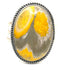 Cuff with oval Bumble Bee Jasper stone measuring 2" x 2" Cuff with 3 bands measures 5 1/2" with 1 1/4" opening. Native American made - Turquoise Mountain artist.