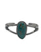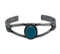 Cuff with 2 bar half round with 3/4" x 1/2" oval shaped genuine turquoise stone channel inlay with and peyote button in satin finish. Large bezel. Cuff measures 5" with 1 1/4" opening. Native American made.