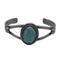 Cuff with 2 bar half round with 3/4" x 3/4" round shaped genuine turquoise stone with peyote button. Cuff measures 5" with 1 1/4" opening. Native American made.