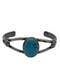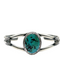 Cuff with 2 bar half round with 5/8" x 3/4" square shaped genuine blue turquoise stone channel inlay with and peyote button in satin finish. Cuff measures 5" with 1 1/2" opening. Native American made.