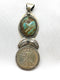 3 1/2" Half Dollar coin pendant with 3/4" x 3/4" #8 mine turquoise