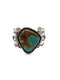 2" x 1/2" Large oval Kingman Turquoise ring with old-style leafwork, size 9. Native American made - Rosella Sandoval, artist
