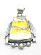 Bumble Bee Pendant with round stone measuring 1 3/4" x 1 1/2" with decorative leaf pattern. Overall length is 3". Native American made - Turquoise Mountain artist.