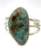 2 1/2" x 1 1/4" Long oval cuff with #8 mine turquoise. Native American made. Original design by Turquoise Mountain.