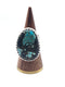 Turquoise ring with oval stone, 1 1/4" x 1" with 6 starbust buttons, size 7 1/2. Native American made, Janice Yazzie, artist.
