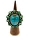 Thunderbird pendant with small red spiny oyster shell measuring 5/8" x 3/8". Overall length is 2 1/2" by 1 3/4" wide. Artist, Chimney Butte