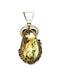Thunderbird pendant with small bumble bee jasper stone measuring 5/8" x 1/4". Overall length is 2 1/4" by 1 3/4" wide. Artist, Jack & Betty Platero