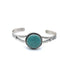 Cuff with stunning 1 1/2" x 1 1/4" turquoise stone with wire bezel. Cuff measures 5" with 1 1/4" opening with some flex to adjust if needed. Band has leaves on the side. Native American made - Turquoise Mountain artist.